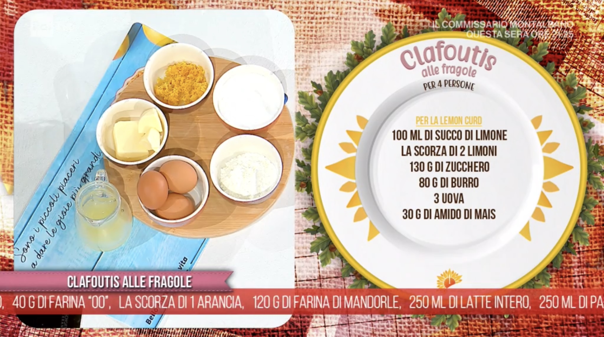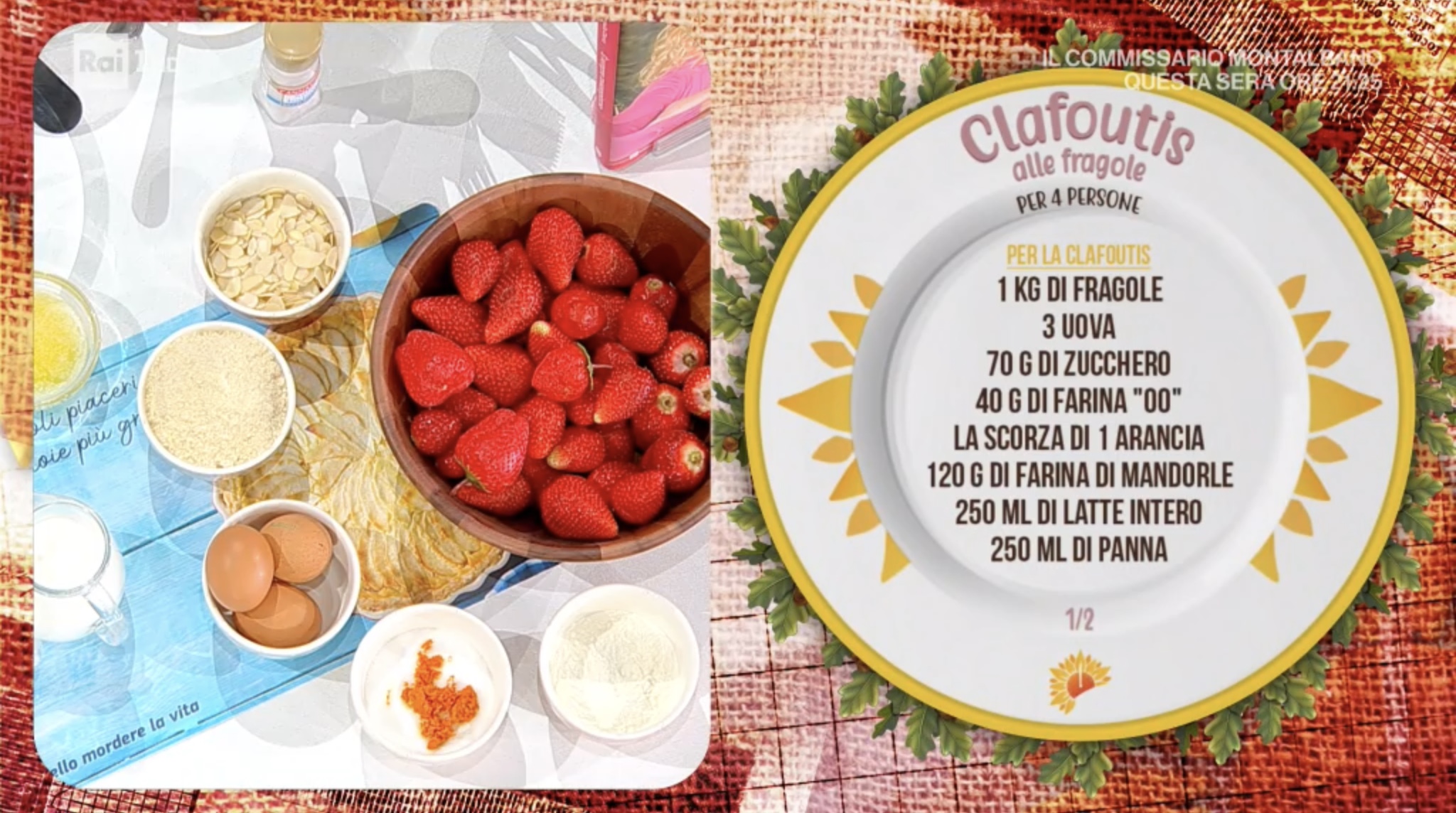 Antonella in apertura di puntata si collega con Paolo ed Enrica, una coppia in diretta dalle isole Canarie che si è trasferita dopo essersi innamorata qui in Italia, ed in omaggio al loro amore, zia Cri prepara un dolce a base di fragole. Facciamo la clafoutis alle fragole.