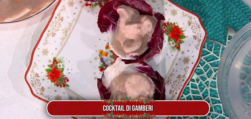 Scoliamo i gamberi in acqua e ghiaccio, quindi li scoliamo ancora e li tamponiamo con carta assorbente. Uniamo i gamberi alla salsa cocktail e mescoliamo per bene. Li serviamo all’interno di ‘coppe’ di foglie di radicchio.