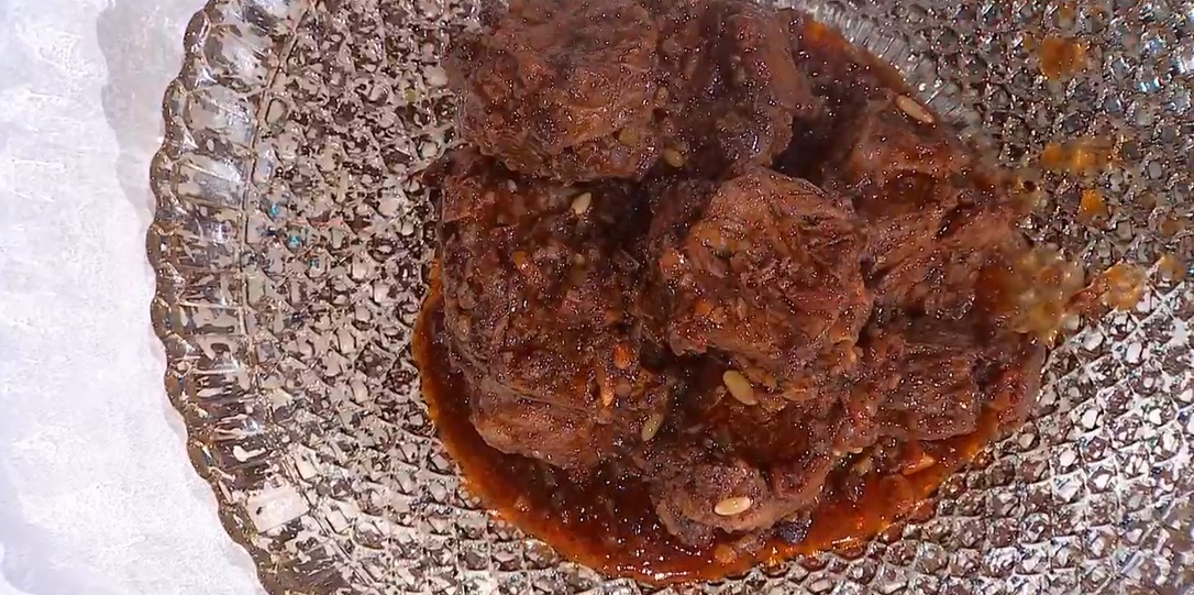 - 2 kg coda di manzo, 500 g sedano, 1 cipolla, 1 carota, 1 spicchio d’aglio, 1 fetta di lardo, 50 g uva sultanina, 50 g pinoli, 400 g pomodori pelati, vino rosso, 1 cucchiaino di cacao, olio, sale e pepe