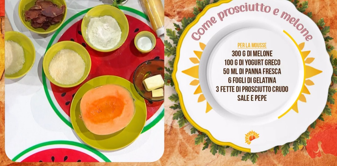 come prosciutto e melone di Daniele PerseganiUltima puntata di questa seconda, straordinaria stagione di ‘E’ sempre mezzogiorno’, che comincia nel migliore dei modi, con Daniele Persegani, che prepara l’antipasto del menu di oggi, una mousse estiva e salata, ecco ‘come prosciutto e melone‘.