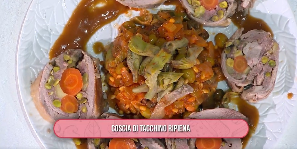 Prima ricetta dell’anno per il buon Fabio Potenzano. Il cuoco siciliano dalla mano sopraffina apre questa golosa annata di ricette con un secondo piatto a base di carne bianca, ovvero una coscia di tacchino ripiena.
