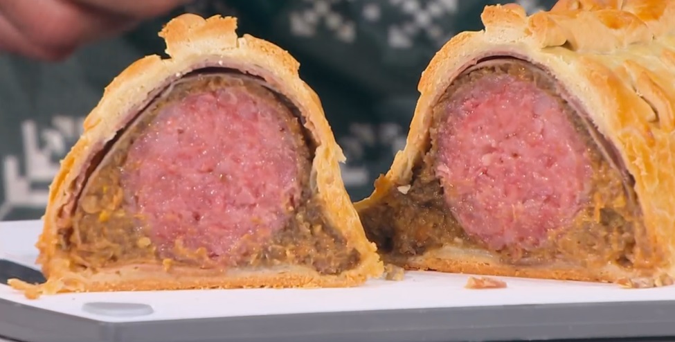 Trasferiamo il tutto sulla pasta sfoglia già pronta, quindi arrotoliamo quest’ultima sul cotechino. Spennelliamo con l’uovo sbattuto e cuociamo in forno caldo a 180° per 40 minuti.