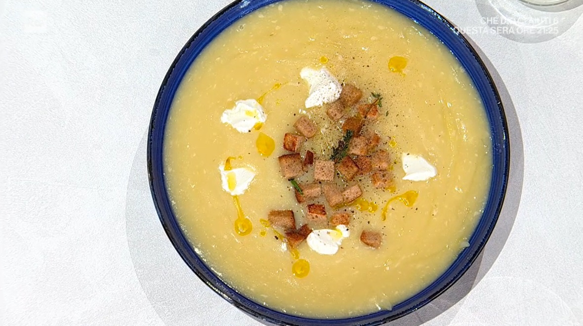 Peliamo tre patate, le tagliamo a cubetti e le mettiamo a soffriggere in un tegame con un generoso filo d’olio. Uniamo anche il porro affettato e lavato. Saliamo e pepiamo. Copriamo con l’acqua e lasciamo bollire per circa 50 minuti. A fine cottura, frulliamo il tutto con il mixer ad immersione.
