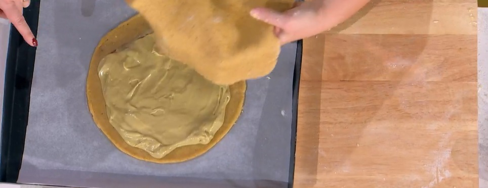Stendiamo la frolla ad uno spessore di 3-4 mm. Ne ritagliamo un disco. Versiamo sopra il disco la crema al pistacchio, lasciando 2 cm dal bordo. Stendiamo nuovamente la frolla rimasta e adagiamo il disco ottenuto sulla crema. Sigilliamo i bordi e ritagliamo l’eccesso. Se vogliamo, applichiamo un cordoncino di frolla sui bordi, spennelliamo con un velo d’acqua e distribuiamo in superficie dei pistacchi in granella. Bucherelliamo in più punti e cuociamo in forno caldo e statico a 180° per 45 minuti.