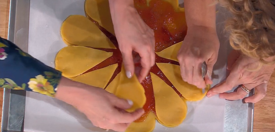 crostata fiore di Natalia CattelaniAl mercoledì, è ormai diventato un appuntamento irrinunciabile quello con il ‘dolce di casa’ di Natalia Cattelani. Oggi, la cuoca emiliana, star del web e provetta pasticcera, prepara la crostata fiore.