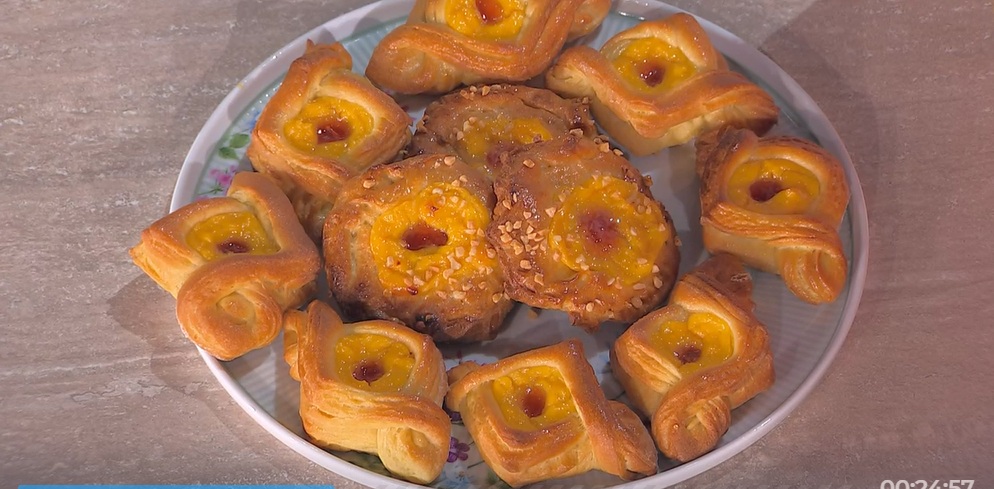 danesi alla crema di Fulvio MarinoAnche in questa puntata più breve (per via della diretta del Tg1 per la visita di Re Carlo al presidente Mattarella), c’è spazio per il lievitato firmato Fulvio Marino. Il panettiere piemontese prepara la ‘ricetta del mezzogiorno’, ovvero quella delle danesi alla crema.