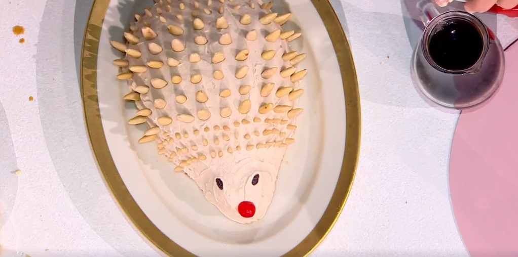 Tagliamo il pan di Spagna a fette spesse circa 1 cm. Spennelliamo una fetta di pan di Spagna (o biscotti secchi) con il caffè e creiamo sopra uno strato di crema al burro. Sovrapponiamo una seconda fetta di pan di Spagna e proseguiamo con caffè, crema e pan di Spagna, fino a ricomporre il pan di Spagna ed ottenere una forma a riccio, creando il muso con gli scarti di pan di Spagna. Stucchiamo tutto il riccio con la crema al burro e creiamo gli aculei con mandorle e pinoli. Finiamo con una spolverata di cacao.