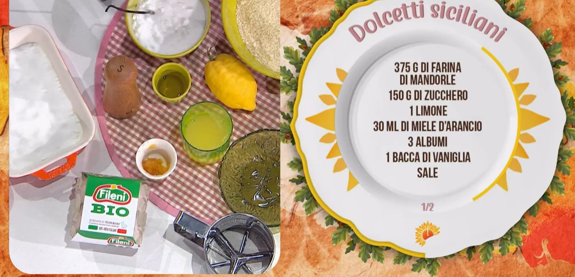 Per la rubrica dedicata alle giovani promesse, arriva in cucina un giovane cuoco/pasticcere siciliano, Claudio Adelfio, che prepara dei dolcetti tipici della sua terra, a base di mandorle. Ecco i dolcetti siciliani.