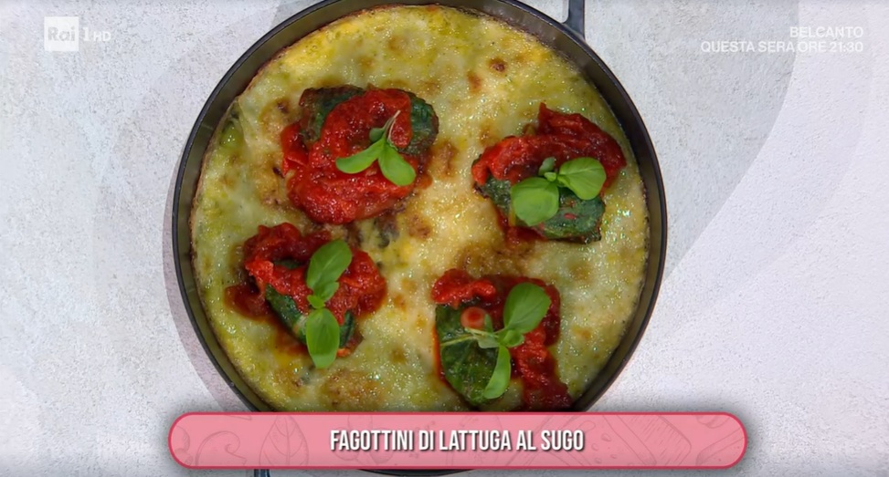 E’ di Mauro e Mattia Improta la ricetta del mezzogiorno, la stessa che una fortunata telespettatrice ha potuto individuare tra tre opzioni. I due cuochi partenopei, padre e figlio, preparano un secondo piatto sfizioso, ovvero dei fagottini di lattuga al sugo.
