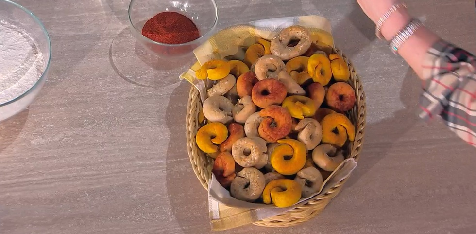 fantasia di tarallini di Fulvio MarinoIl forno di Fulvio Marino, oggi, profuma d’Italia, in particolare, di Basilicata. Il panettiere piemontese propone uno sfizio lievitato con un’eccellenza della gastronomia lucana: il peperone crusco. Ecco la fantasia di tarallini.