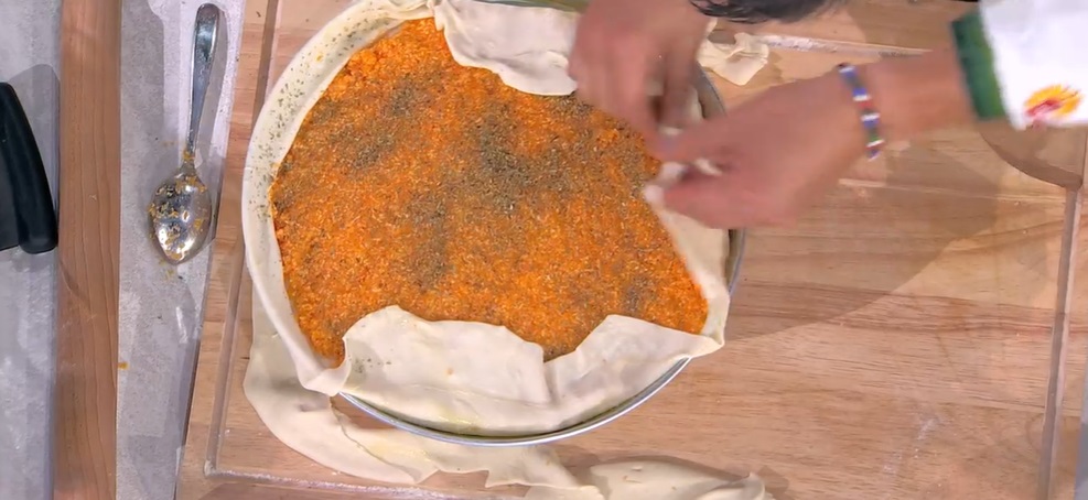 Stendiamo la pasta matta con il mattarello, sottile: dev’essere quasi trasparente. Oliamo una tortiera dal diametro di circa 30 cm, poggiamo sopra la sfoglia, sul fondo e sui bordi. Distribuiamo sul fondo il ripieno di zucca, lo compattiamo con le mani, spolveriamo con abbondante origano e ripieghiamo sui bordi l’eccesso di pasta. Un filo d’olio e mettiamo in forno caldo e statico a 180° per 45 minuti.