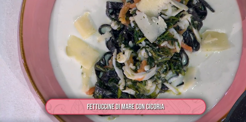 Le cicorie coltivate con maestria da Mat The Farmer sono uno dei tanti ingredienti utilizzati quest’oggi da Gian Piero Fava nella sua ricetta. Il cuoco romano, infatti, propone delle fettucine di mare con cicoria.