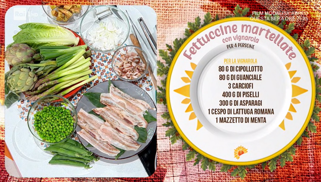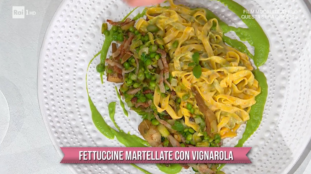 Gian Piero Fava attinge alla ricca e sapiente tradizione contadina, per preparare un piatto che racconta la sua terra, il Lazio, e la sua città, Roma. Ecco le fettuccine martellate con vignarola.