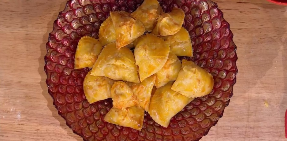 Tiriamo la sfoglia sottile, con il mattarello o la sfogliatrice. Disponiamo sopra delle noci di ripieno, quindi ripieghiamo la sfoglia sul ripieno, facendo uscire l’aria e sigillando bene i bordi. Ritagliamo delle mezzelune, come dei ravioloni. Li disponiamo su una teglia con carta forno, pratichiamo un foro in superficie, spennelliamo con l’uovo sbattuto e li cuociamo in forno caldo e statico a 180° per 20 minuti. Li serviamo con sopra un filo di miele.