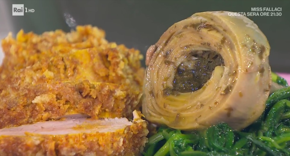 Gian Piero Fava torna in cucina con i suoi mille ingredienti ed altrettanti cucchiai. Il cuoco romano, sempre tanto affezionato alla ‘fruttivendola’, prepara un secondo piatto sontuoso, il filetto alle spezie con carciofi.