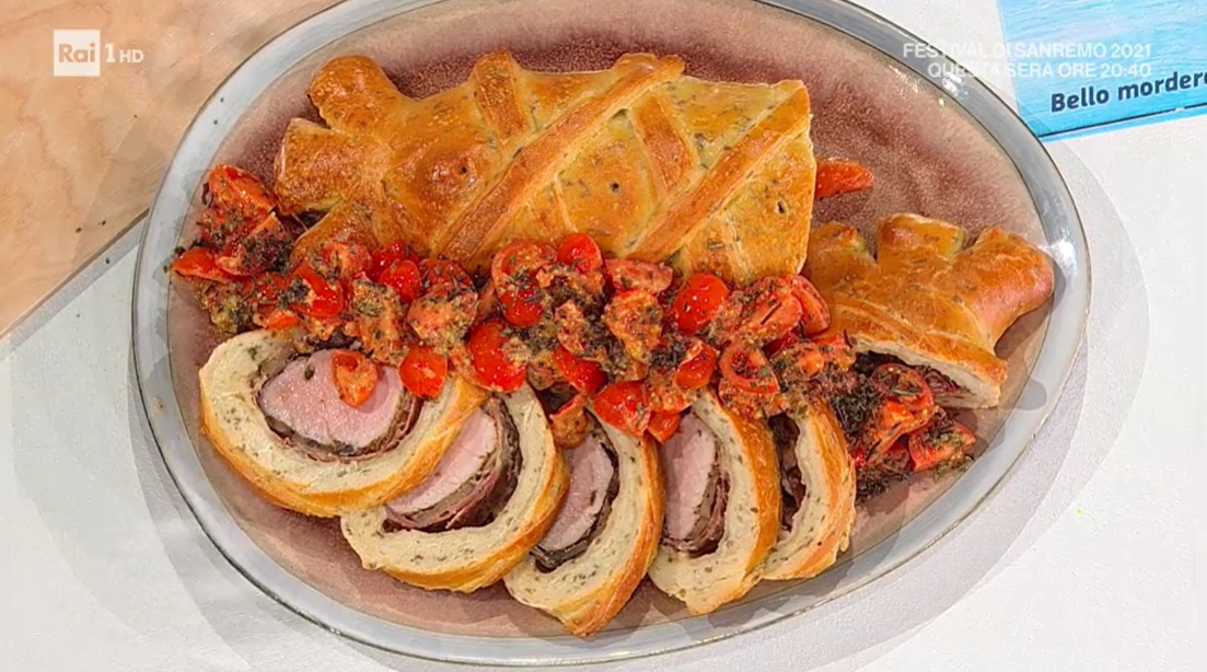 Stendiamo la pasta di pane, in modo da ottenere un rettangolo. Su questo, disponiamo metà delle fette di prosciutto, sopra distribuiamo la metà dei funghi e sopra posizioniamo il filetto rosolato, copriamo con i funghi rimasti ed il prosciutto crudo. Arrotoliamo la pasta di pane sul ripieno e sigilliamo i bordi. Spennelliamo con l’uovo sbattuto e cuociamo in forno caldo e statico a 200° per 35 minuti (190° se ventilato).