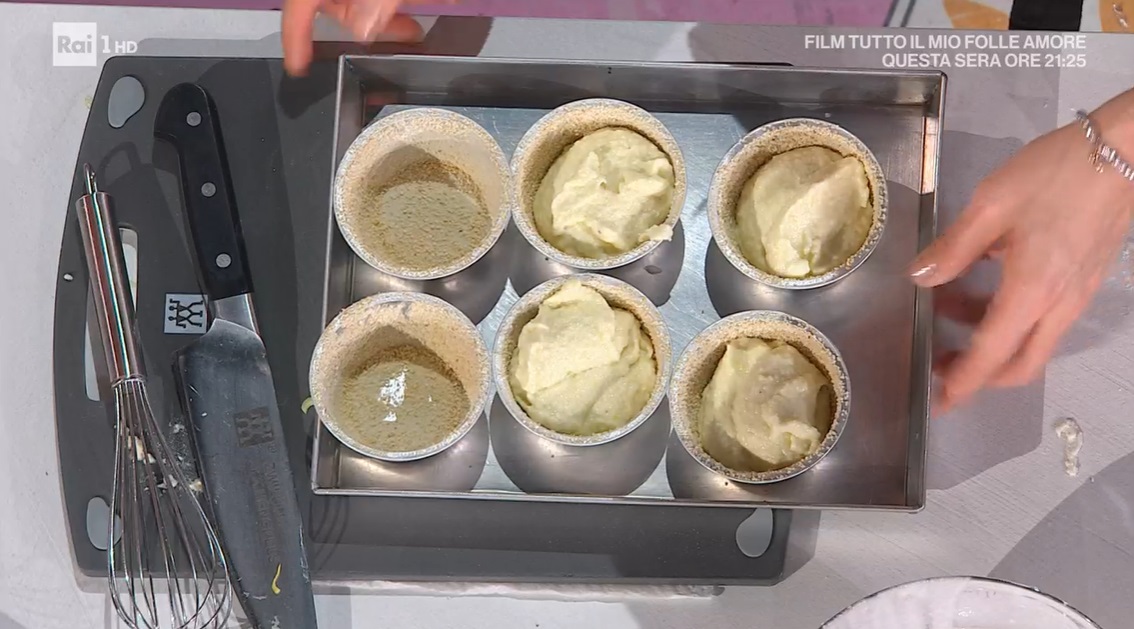 Imburriamo gli stampini monoporzione e li spolveriamo con il pangrattato. Li riempiamo con il composto preparato, li disponiamo all’interno di una teglia o una pirofila e copriamo, sino a metà della loro altezza, con dell’acqua. Mettiamo in forno caldo a 170° per 25 minuti.