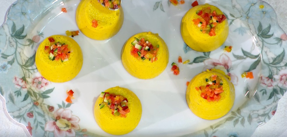 É sempre mezzogiorno | Ricetta flan di patate e curcuma con verdurine di Sonia Peronaci