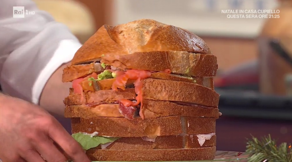 Lasciamo raffreddare, quindi tagliamo a fette spesse circa 1 cm. Farciamo ogni strato a piacere, con salumi, formaggi e creme salate. Ecco quelle di Fulvio: