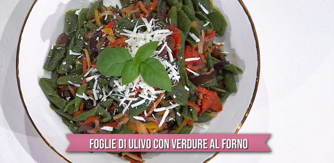 Scaldiamo una padella con uno spicchio d’aglio ed un filo d’olio e mettiamo a rosolare le verdure cotte in forno. Profumiamo con origano, basilico ed olive taggiasche. Lasciamo insaporire qualche istante, quindi uniamo la pasta con un po’ d’acqua di cottura. Saltiamo qualche istante e serviamo con la ricotta salata grattugiata.