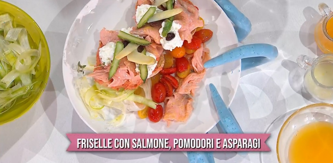 Ultima settimana di messa in onda, tempo di saluti, tempo di ospiti e sorprese. Nel bosco di Antonella, quindi, arriva zia Mara, col suo carico di simpatia e golosità e punta già il cuoco più belloccio, Gian Piero Fava. Lo chef romano, oggi, prepara un piatto semplice (dice lui), una frisella con salmone pomodori e asparagi.