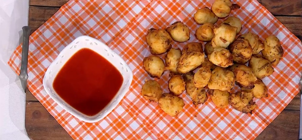 In un pentolino, scaldiamo abbondante olio profondo. Tuffiamo l’impasto lievitato a cucchiaiate (usiamo due cucchiai) e lasciamo friggere fino a doratura. Le scoliamo su carta assorbente.