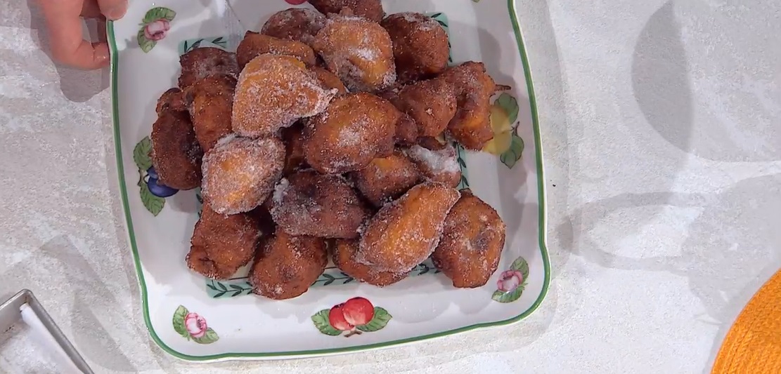 Scaldiamo in un pentolino abbondante olio/strutto profondo. Con due cucchiai, formiamo delle quenelles di impasto, inserendo al centro un dadino di cioccolato. Tuffiamo direttamente nell’olio ben caldo e lasciamo friggere fino a doratura, mescolando di tanto in tanto. Scoliamo su carta assorbente e, ancora calde, le rotoliamo nello zucchero semolato.
