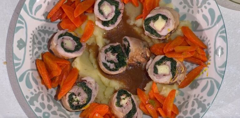 Fabio Potenzano confeziona la ‘ricetta del mezzogiorno’, che vale 150 euro di buoni spesa per una fortunata telespettatrice. Per lei, il cuoco siciliano prepara un secondo piatto, i fuselli di pollo farciti.