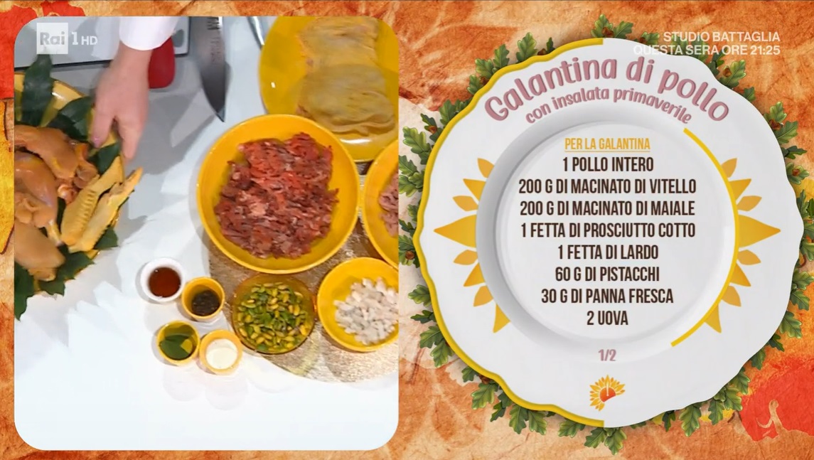 galantina di pollo con insalata primaverile di Chloe FacchiniChloe Facchini torna alle origini, alle sue radici, che affondano nella ‘verace’ Emilia. La cuoca bolognese prepara un secondo piatto tipico della tradizione contadina emiliana, la galantina di pollo con insalata primaverile.