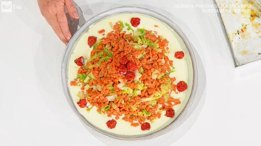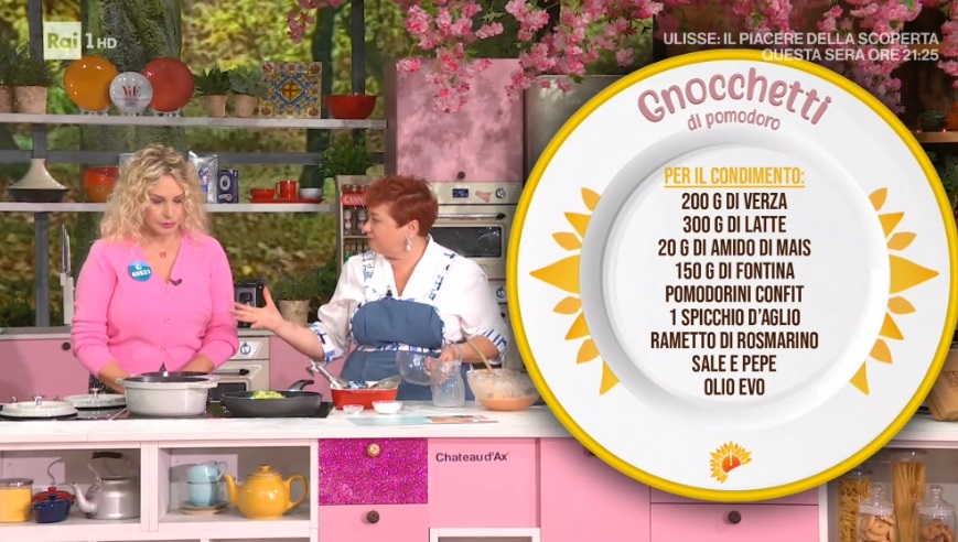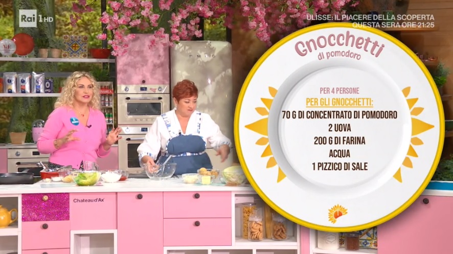 La zia Cri accoglie il consiglio dell’amico in collegamento, ovvero il conduttore Alessandro Greco con la moglie, e prepara un piatto a base di verza. Ecco gli gnocchetti di pomodoro.