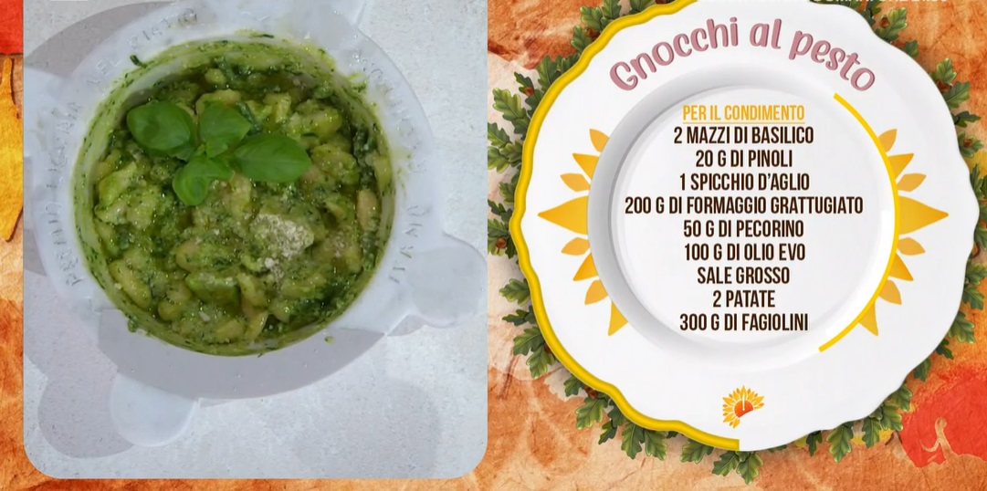 Lessiamo, nella stessa pentola degli gnocchi, i fagiolini a pezzetti e le patate a dadini piccoli. Scoliamo tutto insieme e condiamo con abbondante pesto di basilico (che diluiamo con un mestolino di acqua di cottura della pasta).