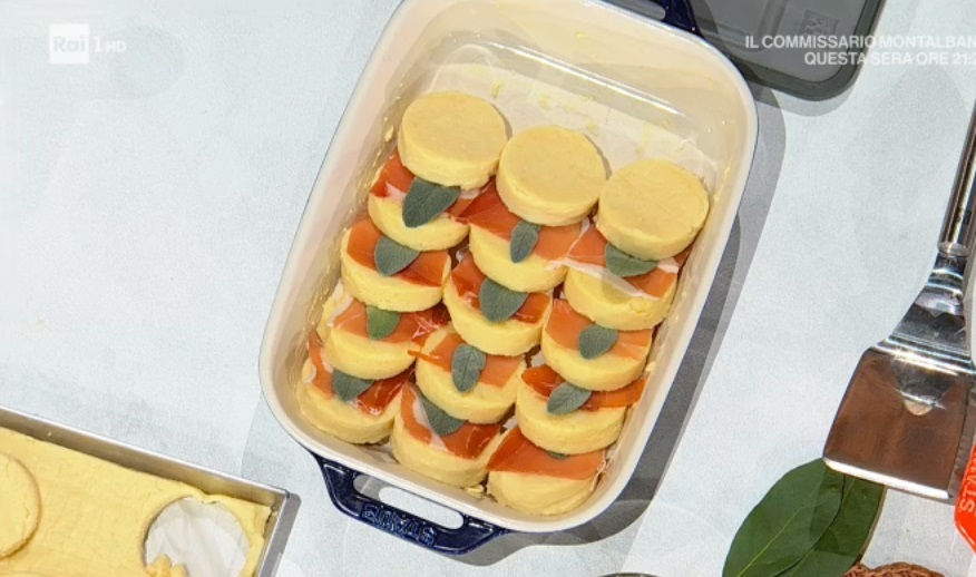 Disponiamo gli gnocchi all’interno di una pirofila imburrata, sovrapponendoli leggermente ed alternandoli a fettine di prosciutto crudo e salvia (foto). Spolveriamo con il pecorino grattugiato e versiamo sopra la besciamella ricca. Passiamo in forno caldo e statico a 200° per 15 minuti.