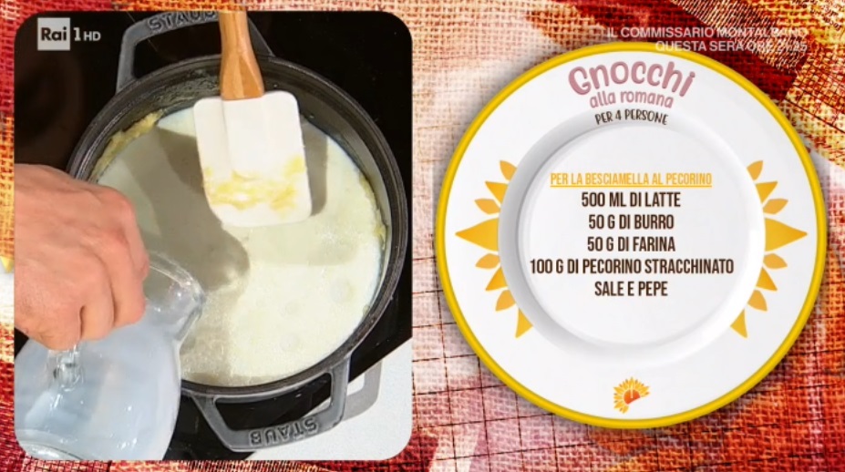 - Besciamella: 500 ml latte, 50 g burro, 50 g farina, 100 g pecorino stracchinato, sale, pepe