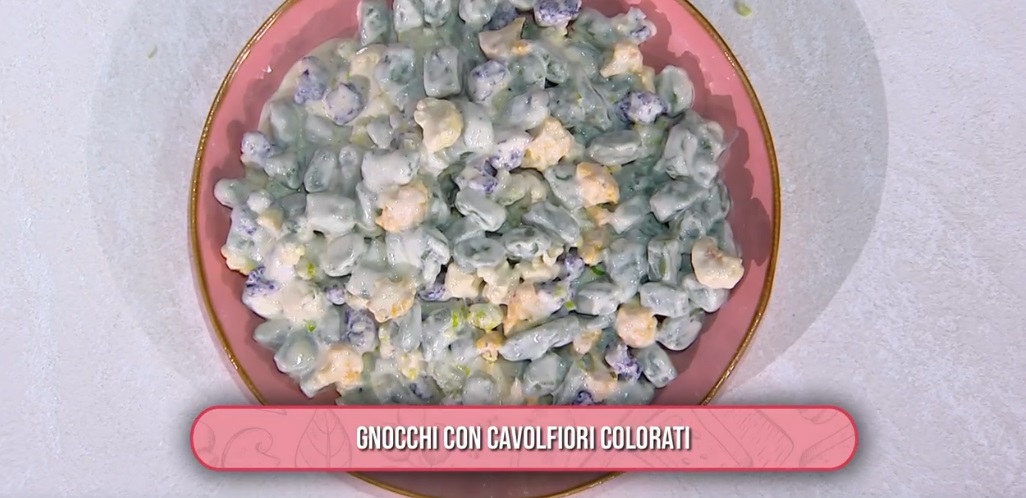 Giovedì gnocchi… anzi, venerdì, gnocchi! Antonio Paolino, infatti, dopo aver intonato una delle canzoni che tanto piacciono a Persegani (?!), propone un primo piatto goloso, ovvero gli gnocchi con cavolfiori colorati.