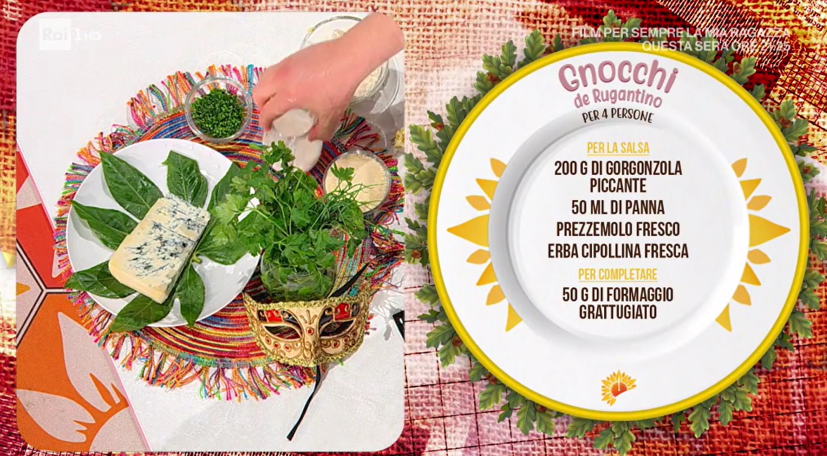 - Condimento: 200 g gorgonzola piccante, 50 ml panna, prezzemolo, erba cipollina