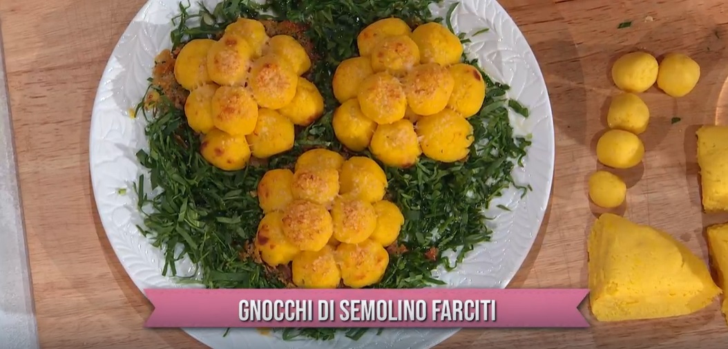 - Gnocchi: 600 ml latte, 6 g sale, 2 tuorli, 1 g zafferano, 80 g formaggio grattugiato, 20 g burro, 180 g semolino, noce moscata