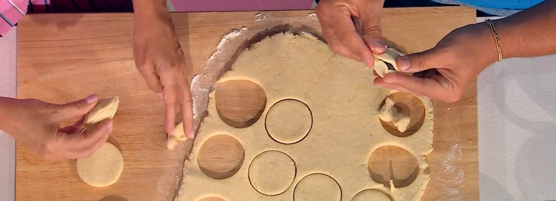 Tiriamo l’impasto col mattarello ad uno spessore di circa mezzo cm. Con un piccolo coppapasta, ne ritagliamo dei dischetti; al centro di ognuno mettiamo una susina denocciolata (piccole e condite con sale e pepe), quindi chiudiamo il dischetto a mezzaluna, togliamo l’eccesso dai bordi ed arrotondiamo, dando la forma di palline. Le lessiamo in acqua bollente e salata. Lasciamo bollire per almeno 3-4 minuto, da quando vengono a galla.