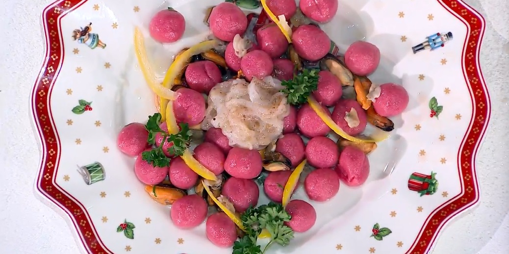 gnocchi rossi al profumo di mare di Fabio PotenzanoSanta Lucia è una festa molto sentita anche in Sicilia, dove sono innumerevoli le tradizioni culinarie legate a questa festività. Fabio Potenzano ce ne parla, ma ci prepara un primo piatto gourmet. Vediamo come preparare gli gnocchi rossi al profumo di mare.