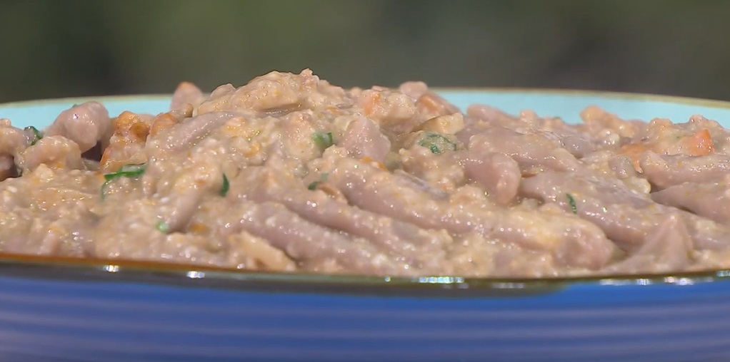 gnocculi al nero d'Avola di Fabio PotenzanoFabio Potenzano prepara la ricetta ‘dedicata’, un’antica pasta fresca siciliana che renderà felice una fedelissima telespettatrice, che compie ben 87 anni. Per lei, Fabio prepara gli gnocculi al nero d’Avola.