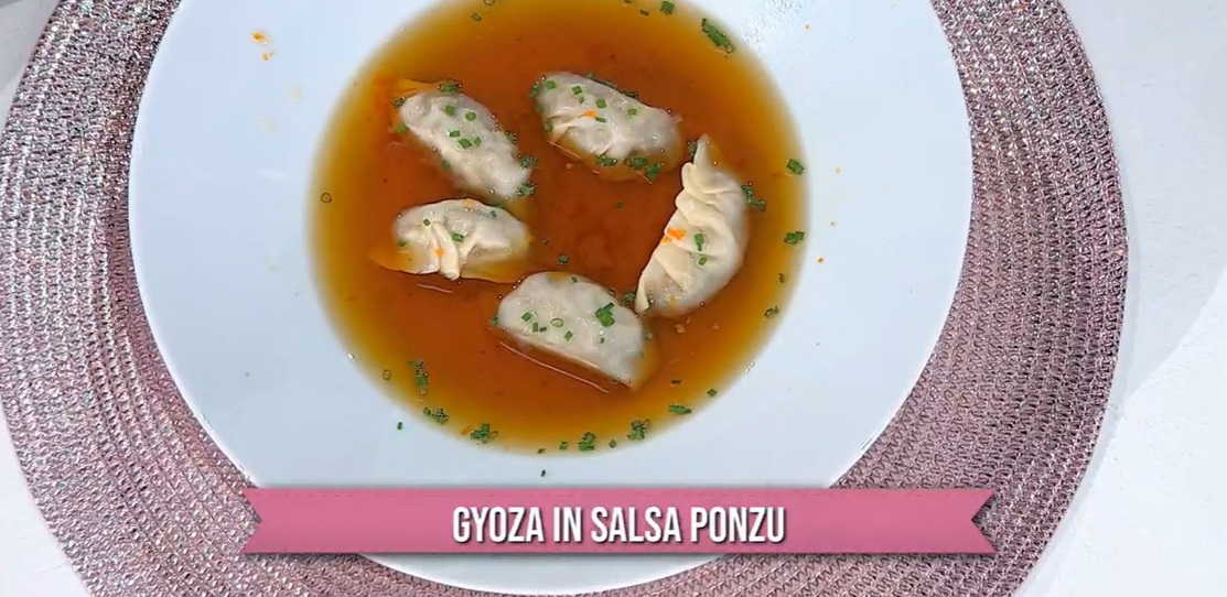 - Ripieno: 150 g cavolo cinese, 150 g macinato di maiale, 1 spicchio d’aglio, 1 cipollotto, 1 cucchiaio di olio di sesamo, 2 cucchiai di salsa di soia, 30 g zenzero fresco, 10 g fecola di patate