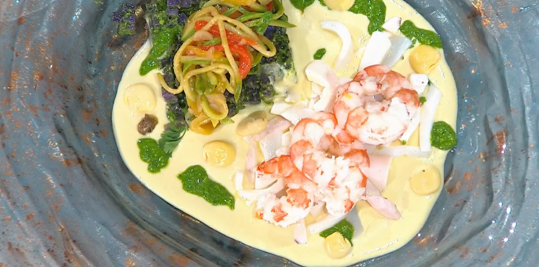 L’uomo dai mille ingredienti, Gian Piero Fava, oggi ne utilizza uno in particolare, i lupini, coltivati da un’imprenditrice campana in collegamento con Antonella. Vediamo come preparare l’insalata di mare a modo mio.