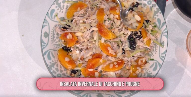 Presenza fissa, o quasi, della puntata del venerdì, Sonia Peronaci torna in cucina per regalarci una delle sue mille ricette creative. Oggi, la star del web prepara un piatto light, l’insalata invernale di tacchino e prugne.