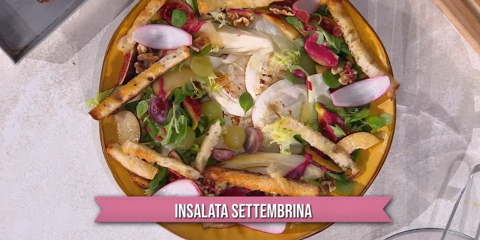 Un ‘bel’ ricordo per il week end ce lo regala Roberto Valbuzzi, il cuoco (forse) più avvenente del cast. Roberto, utilizzando i frutti della stagione, prepara un’insalata settembrina.