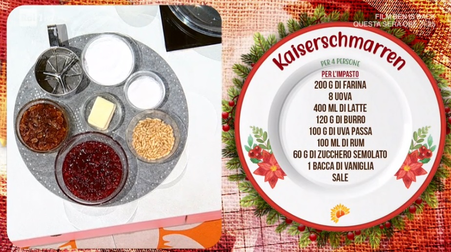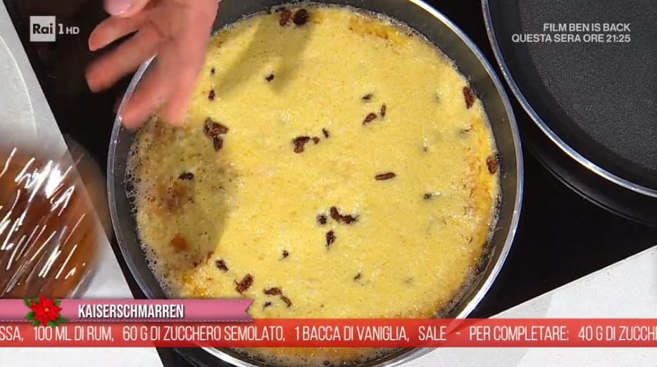kaiserschmarrenDirettamente dalle montagne dell’Alto Adige, Barbara De Nigris arriva nella cucina di Rai1 per preparare un piatto caldo e natalizio e disturbare il sonno di molti italiani, compreso Maurino Improta… Ma Barbara, oltre ad una bella donna, è una cuoca capacissima e ci spiega come preparare un dolce, il kaiserschmarren.
