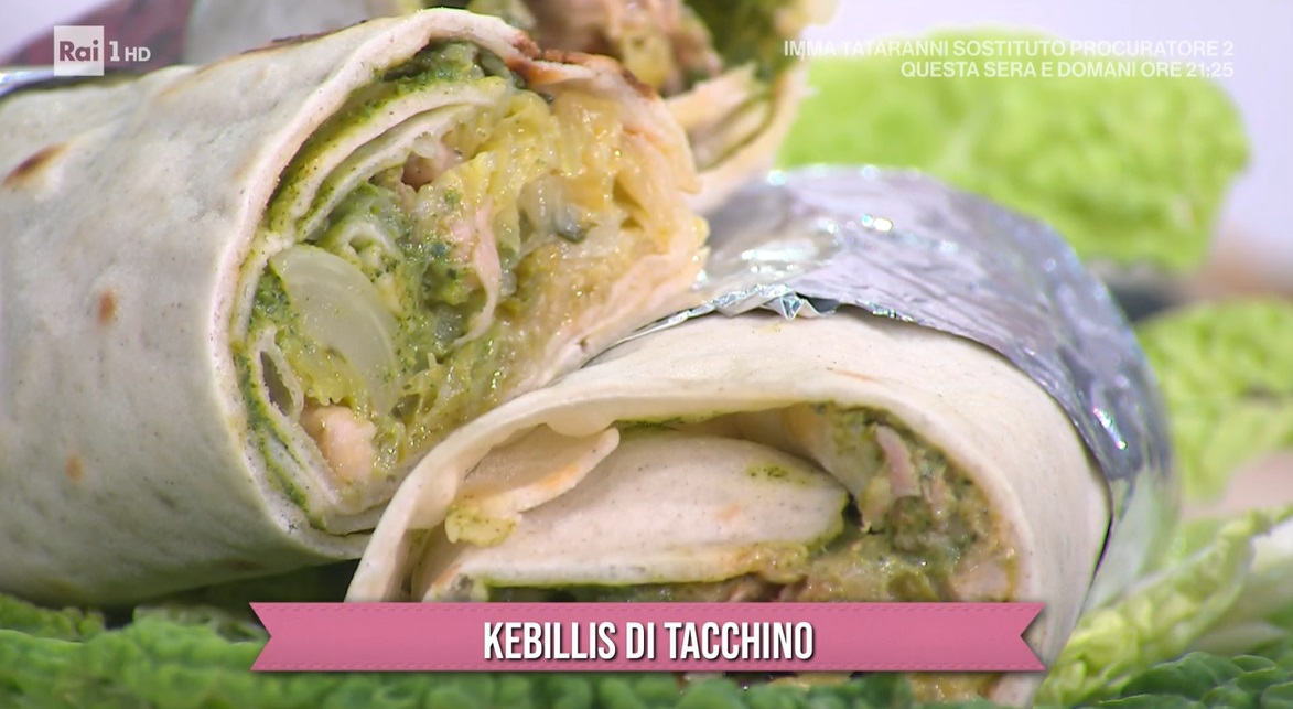 Posizioniamo il pane arabo su un foglio di carta d’alluminio. Spalmiamo sopra la salsa verde, quindi distribuiamo su questa la verza spadellata, il tacchino sfilacciato e, infine, la salsa ai peperoni. Aiutandoci con la carta alluminio, arrotoliamo il pane sul ripieno, sigillandolo per bene all’interno, e chiudiamo a cartoccio con la carta alluminio: possiamo prepararlo anche in anticipo. Prima di servirlo, tagliamo a metà, tenendo la carta.