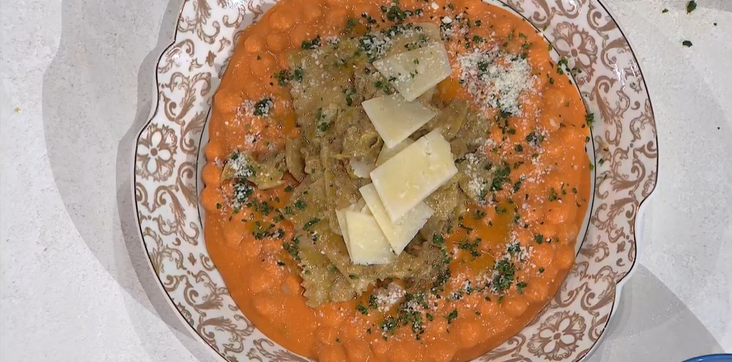 Non si arrende e, anche oggi, forte dei suoi mille ingredienti, Gian Piero Fava conquista la cucina del mezzogiorno per preparare un primo piatto sontuoso, le lasagne con carciofi e ceci.