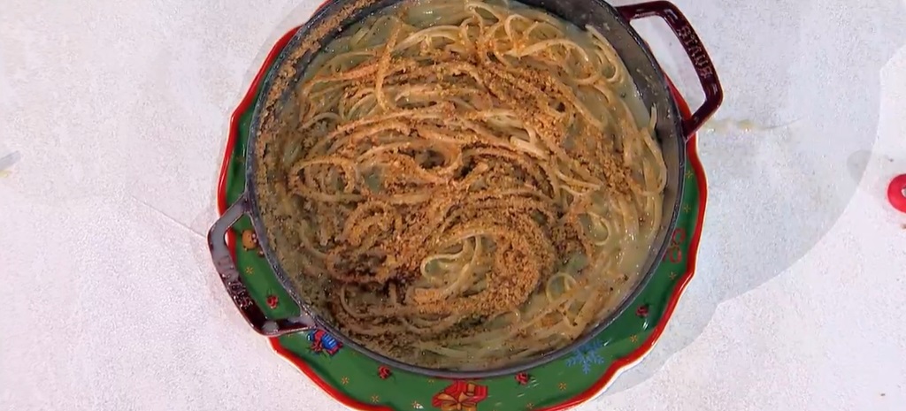 Salvatore Giugliano, il cuoco campano erede di una lunga tradizione di ristorazione made in Napoli, torna nella cucina di Rai1 per proporre un’idea golosa e sciuè sciuè per una spaghettata di mezzanotte. Ecco le linguine aglio e olio.
