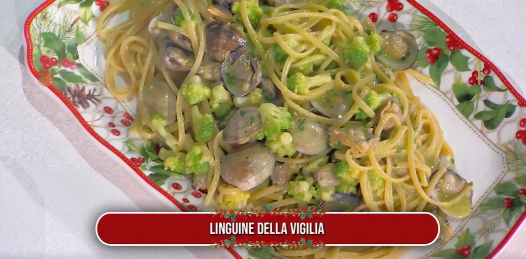 Anche Gian Piero Fava prepara un primo piatto, che è usanza consumare alla Vigilia di Natale, perlomeno a Roma. Il cuoco capitolino prepara le linguine della Vigilia in due modi.