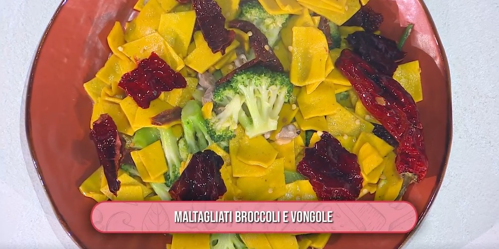 Mauro e Mattia Improta preparano la ricetta del mezzogiorno, quella che un fortunato telespettatore ha potuto indovinare tra tre opzioni. I due cuochi campani preparano i maltagliati broccoli e vongole.