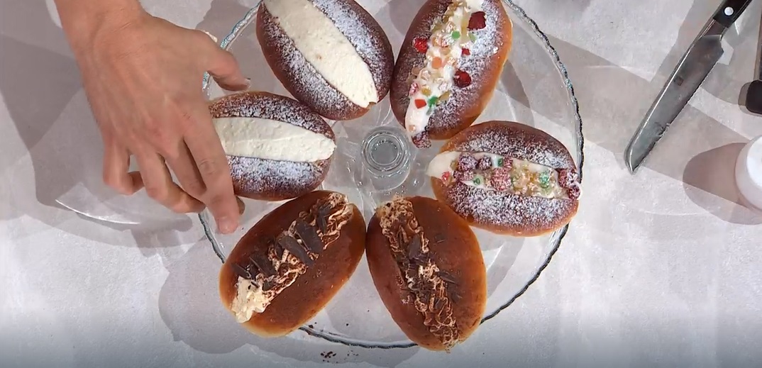 Dopo una ‘pausa’ dai suoi mille ingredienti, con una memorabile cacio e pepe, Gian Piero Fava torna in cucina ad esibire la sua arte nella cucina più elaborata. Oggi, in particolare, il cuoco romano prepara un dolce della tradizione romana, i maritozzi, con diverse farciture.
